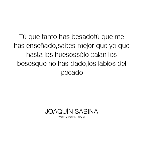 Tú que tanto has besadotú que me has enseñado,sabes mejor que yo que hasta los huesossólo calan los besosque no has dado,los labios del pecado