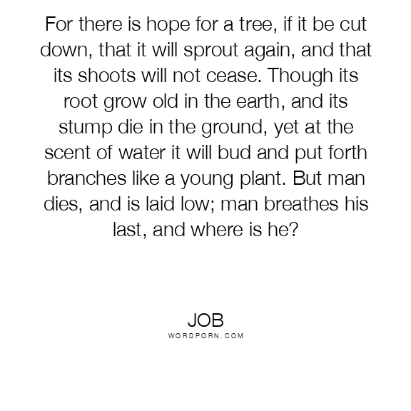 For there is hope for a tree, if it be cut down, that it will sprout again, and that its shoots will not cease. Though its root grow old in the earth, and its stump die in the ground, yet at the scent of water it will bud and put forth branches like a young plant. But man dies, and is laid low; man breathes his last, and where is he?