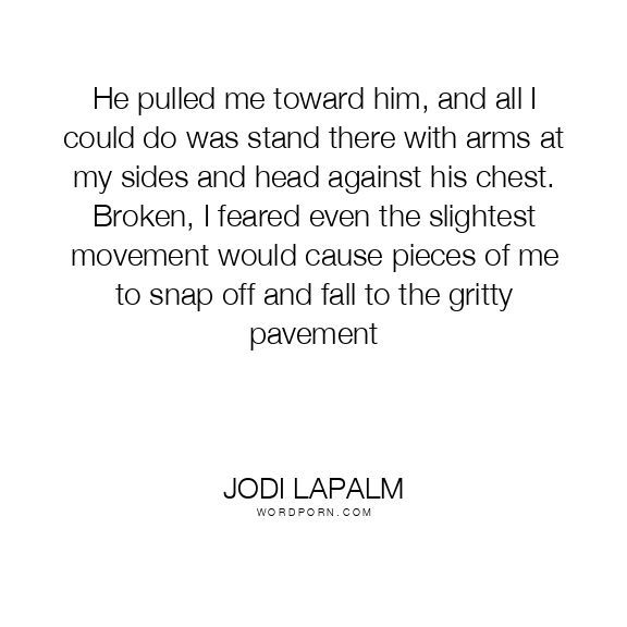 He pulled me toward him, and all I could do was stand there with arms at my sides and head against his chest. Broken, I feared even the slightest movement would cause pieces of me to snap off and fall to the gritty pavement