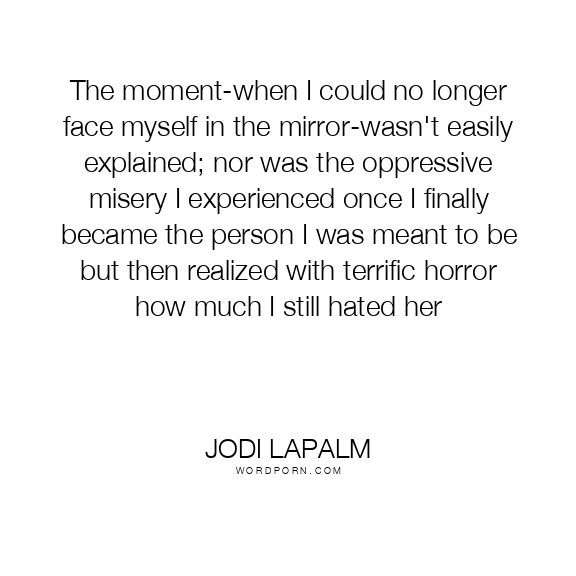 The moment-when I could no longer face myself in the mirror-wasn't easily explained; nor was the oppressive misery I experienced once I finally became the person I was meant to be but then realized with terrific horror how much I still hated her