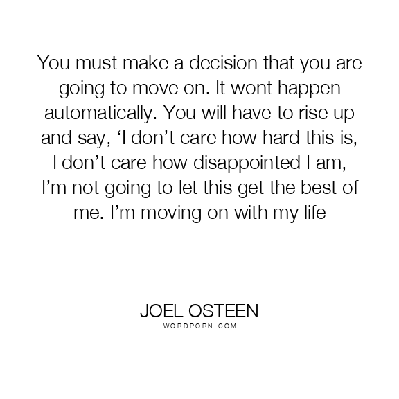 You must make a decision that you are going to move on. It wont happen automatically. You will have to rise up and say, ‘I don’t care how hard this is, I don’t care how disappointed I am, I’m not going to let this get the best of me. I’m moving on with my life