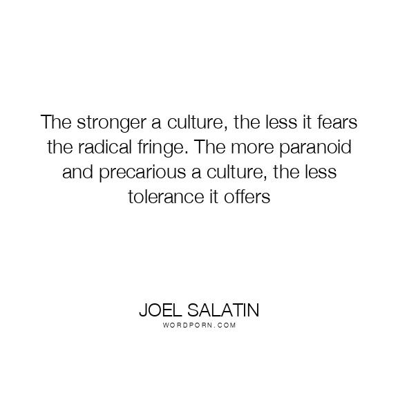 The stronger a culture, the less it fears the radical fringe. The more paranoid and precarious a culture, the less tolerance it offers