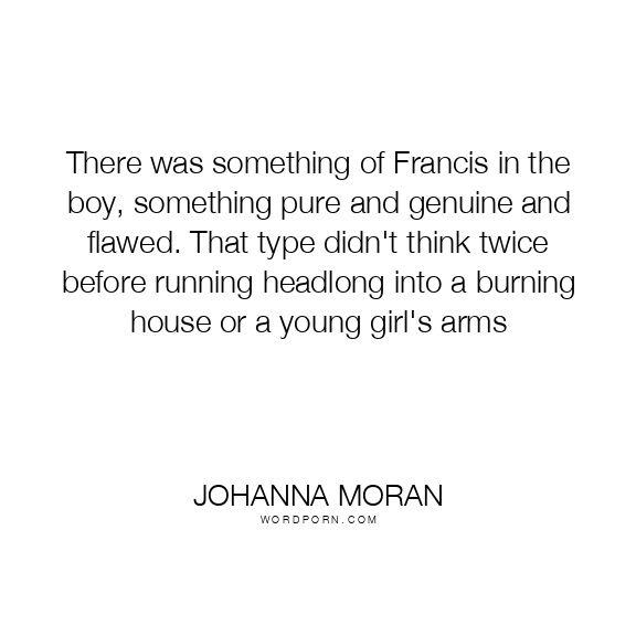 There was something of Francis in the boy, something pure and genuine and flawed. That type didn't think twice before running headlong into a burning house or a young girl's arms