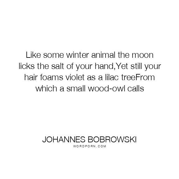 Copy Image Like some winter animal the moon licks the salt of your hand,Yet still your hair foams violet as a lilac treeFrom which a small wood-owl calls Moms Typewriter A A SAVE THIS IMAGE