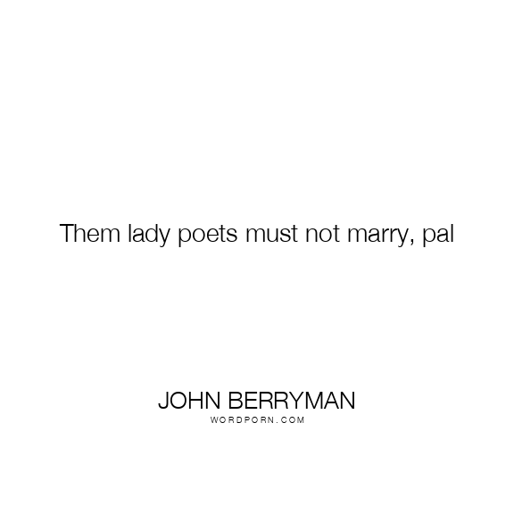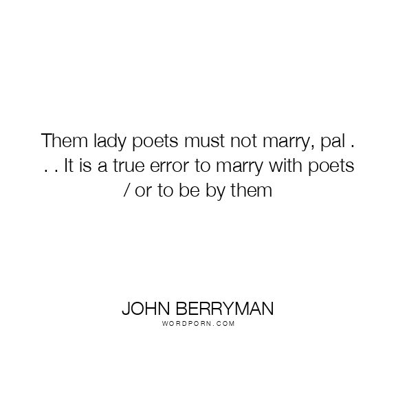 Them lady poets must not marry, pal . . . It is a true error to marry with poets / or to be by them