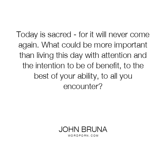 Today is sacred - for it will never come again. What could be more important than living this day with attention and the intention to be of benefit, to the best of your ability, to all you encounter?
