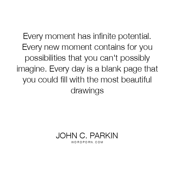 Every moment has infinite potential. Every new moment contains for you possibilities that you can't possibly imagine. Every day is a blank page that you could fill with the most beautiful drawings
