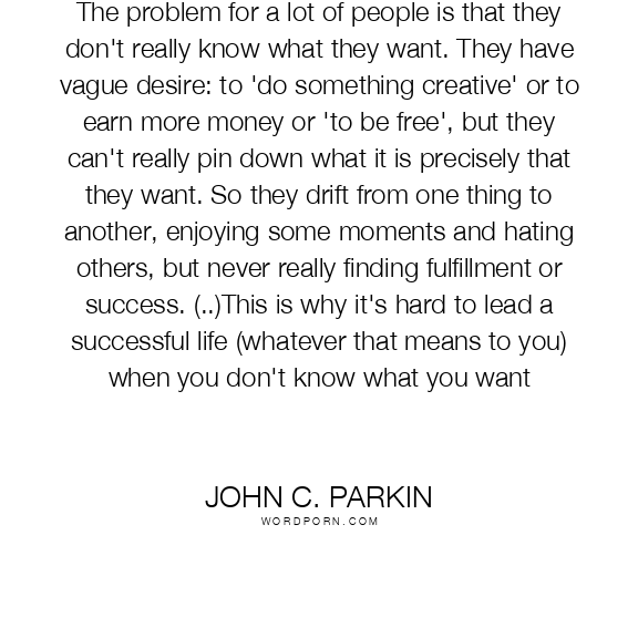 The problem for a lot of people is that they don't really know what they want. They have vague desire: to 'do something creative' or to earn more money or 'to be free', but they can't really pin down what it is precisely that they want. So they drift from one thing to another, enjoying some moments and hating others, but never really finding fulfillment or success. (..)This is why it's hard to lead a successful life (whatever that means to you) when you don't know what you want