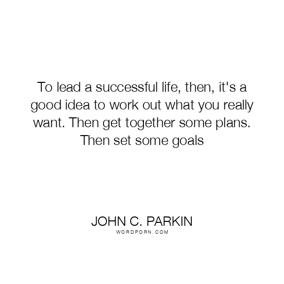 To lead a successful life, then, it's a good idea to work out what you really want. Then get together some plans. Then set some goals