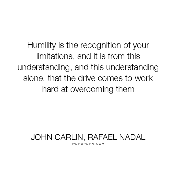Humility is the recognition of your limitations, and it is from this understanding, and this understanding alone, that the drive comes to work hard at overcoming them