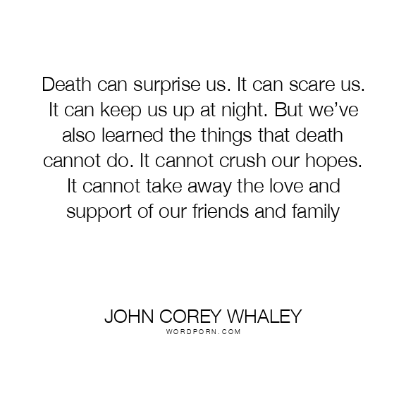 Death can surprise us. It can scare us. It can keep us up at night. But we’ve also learned the things that death cannot do. It cannot crush our hopes. It cannot take away the love and support of our friends and family