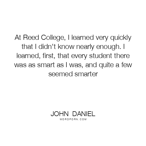 At Reed College, I learned very quickly that I didn't know nearly enough. I learned, first, that every student there was as smart as I was, and quite a few seemed smarter