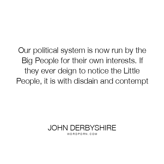 Our political system is now run by the Big People for their own interests. If they ever deign to notice the Little People, it is with disdain and contempt
