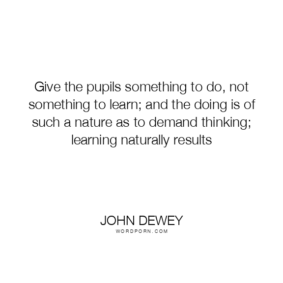 Give the pupils something to do, not something to learn; and the doing is of such a nature as to demand thinking; learning naturally results