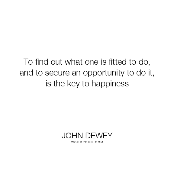 To find out what one is fitted to do, and to secure an opportunity to do it, is the key to happiness