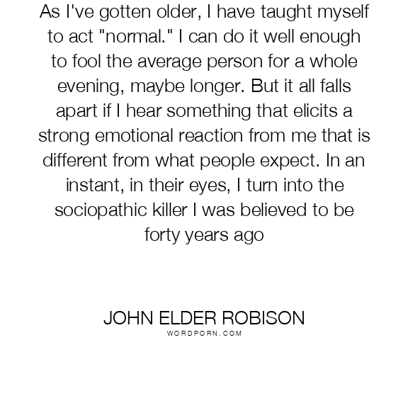 As I've gotten older, I have taught myself to act "normal." I can do it well enough to fool the average person for a whole evening, maybe longer. But it all falls apart if I hear something that elicits a strong emotional reaction from me that is different from what people expect. In an instant, in their eyes, I turn into the sociopathic killer I was believed to be forty years ago