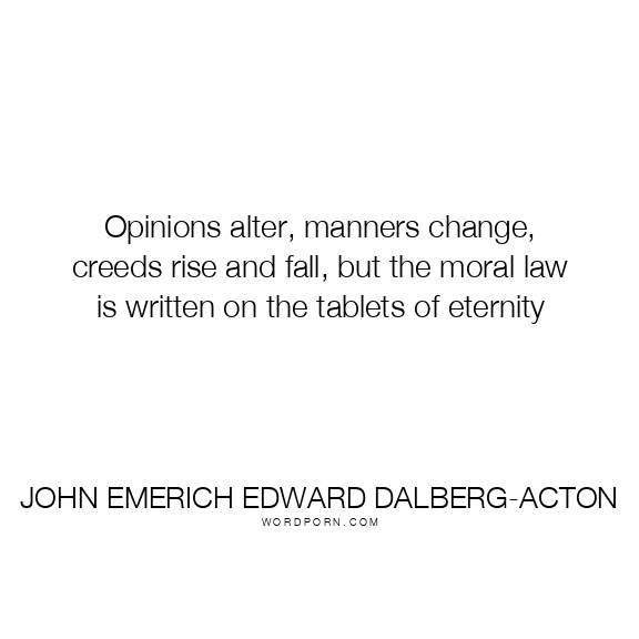 Opinions alter, manners change, creeds rise and fall, but the moral law is written on the tablets of eternity