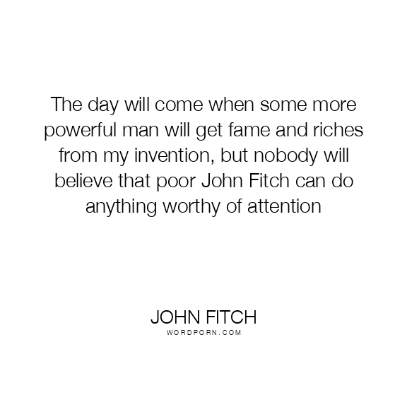 The day will come when some more powerful man will get fame and riches from my invention, but nobody will believe that poor John Fitch can do anything worthy of attention
