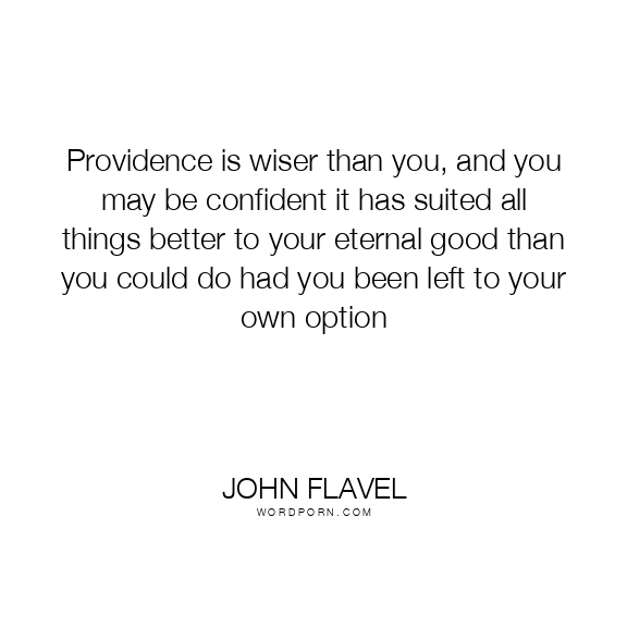 Providence is wiser than you, and you may be confident it has suited all things better to your eternal good than you could do had you been left to your own option