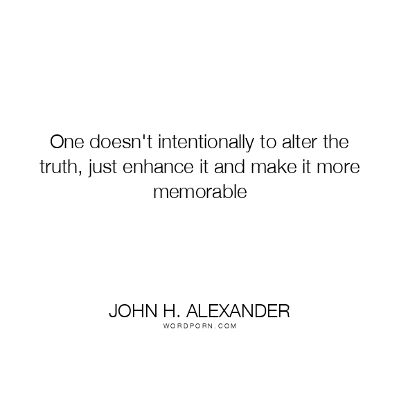 One doesn't intentionally to alter the truth, just enhance it and make it more memorable