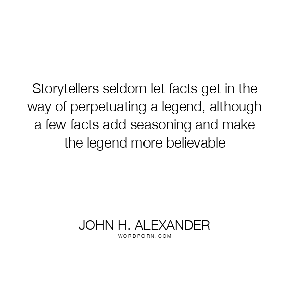 Storytellers seldom let facts get in the way of perpetuating a legend, although a few facts add seasoning and make the legend more believable