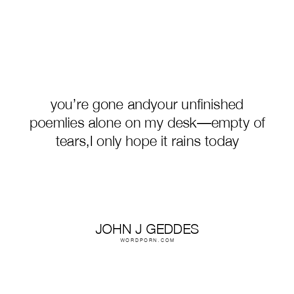 you’re gone andyour unfinished poemlies alone on my desk—empty of tears,I only hope it rains today