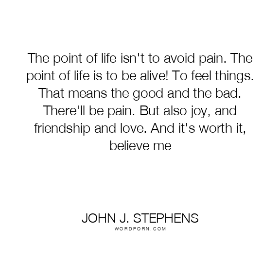 The point of life isn't to avoid pain. The point of life is to be alive! To feel things. That means the good and the bad. There'll be pain. But also joy, and friendship and love. And it's worth it, believe me