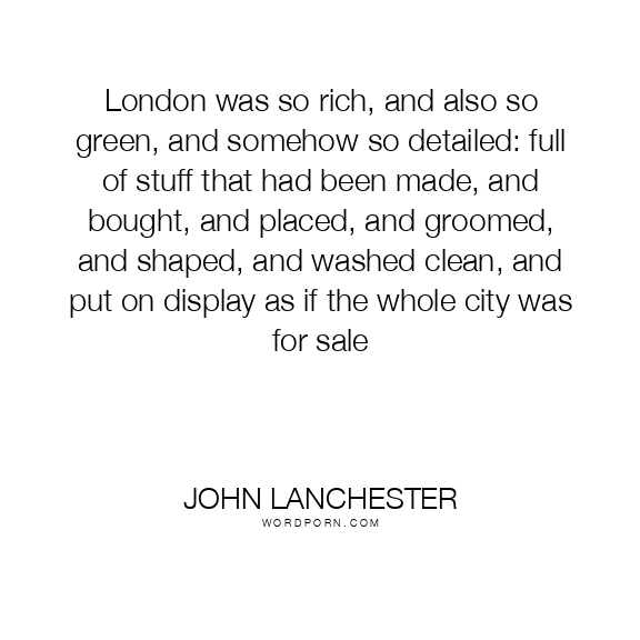 London was so rich, and also so green, and somehow so detailed: full of stuff that had been made, and bought, and placed, and groomed, and shaped, and washed clean, and put on display as if the whole city was for sale