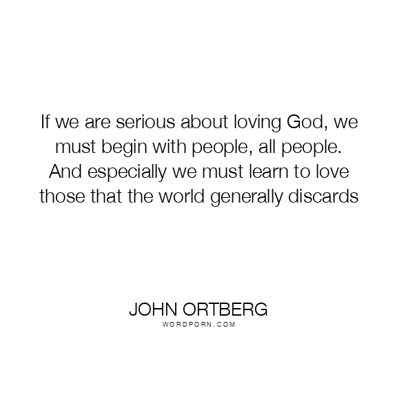 If we are serious about loving God, we must begin with people, all people. And especially we must learn to love those that the world generally discards