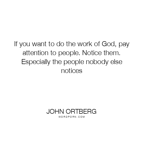 If you want to do the work of God, pay attention to people. Notice them. Especially the people nobody else notices