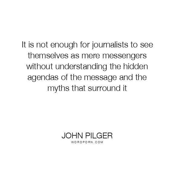 It is not enough for journalists to see themselves as mere messengers without understanding the hidden agendas of the message and the myths that surround it