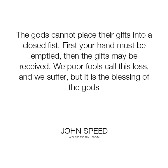 The gods cannot place their gifts into a closed fist. First your hand must be emptied, then the gifts may be received. We poor fools call this loss, and we suffer, but it is the blessing of the gods