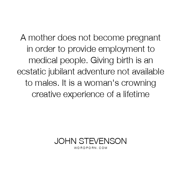 A mother does not become pregnant in order to provide employment to medical people. Giving birth is an ecstatic jubilant adventure not available to males. It is a woman's crowning creative experience of a lifetime