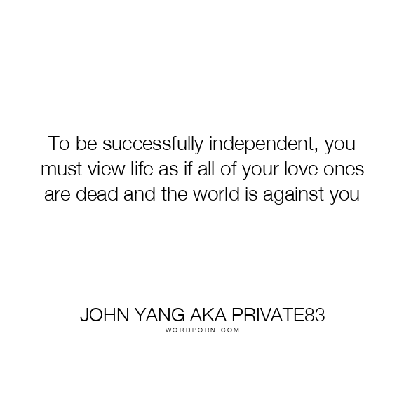 To be successfully independent, you must view life as if all of your love ones are dead and the world is against you