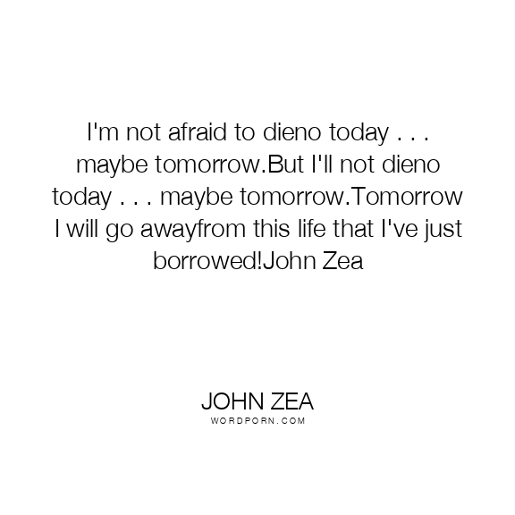 I'm not afraid to dieno today . . . maybe tomorrow.But I'll not dieno today . . . maybe tomorrow.Tomorrow I will go awayfrom this life that I've just borrowed!John Zea