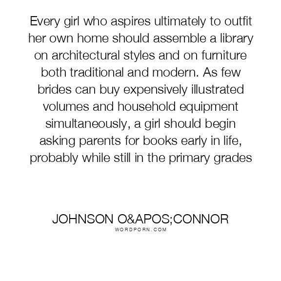 Every girl who aspires ultimately to outfit her own home should assemble a library on architectural styles and on furniture both traditional and modern. As few brides can buy expensively illustrated volumes and household equipment simultaneously, a girl should begin asking parents for books early in life, probably while still in the primary grades