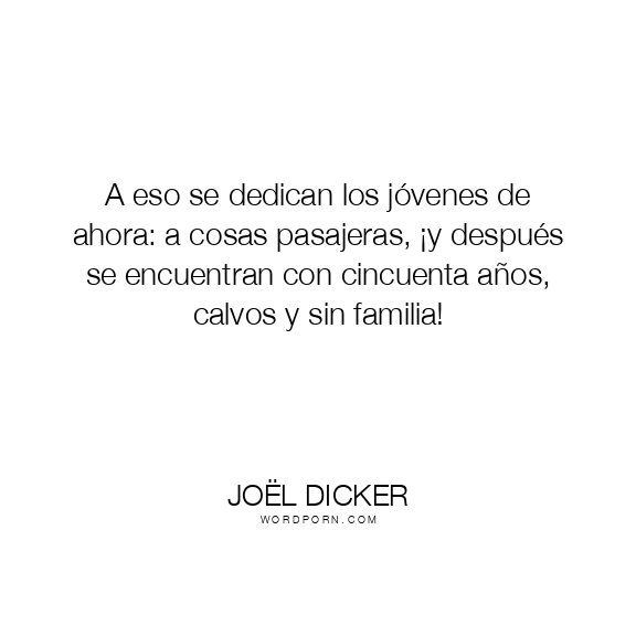 A eso se dedican los jóvenes de ahora: a cosas pasajeras, ¡y después se encuentran con cincuenta años, calvos y sin familia!
