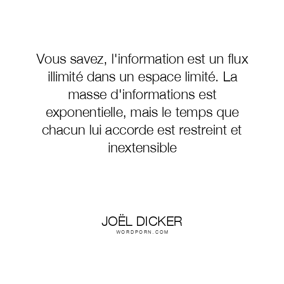 Vous savez, l'information est un flux illimité dans un espace limité. La masse d'informations est exponentielle, mais le temps que chacun lui accorde est restreint et inextensible