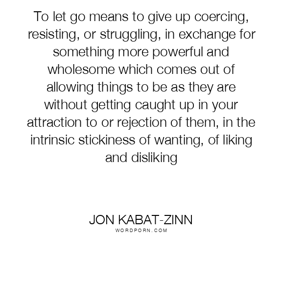 To let go means to give up coercing, resisting, or struggling, in exchange for something more powerful and wholesome which comes out of allowing things to be as they are without getting caught up in your attraction to or rejection of them, in the intrinsic stickiness of wanting, of liking and disliking