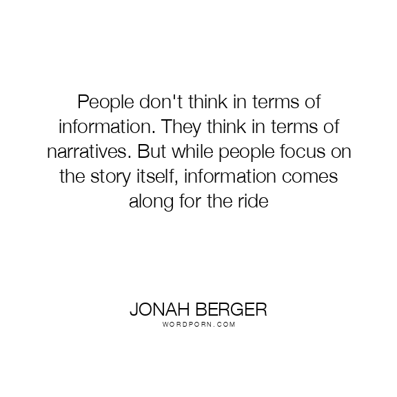 People don't think in terms of information. They think in terms of narratives. But while people focus on the story itself, information comes along for the ride