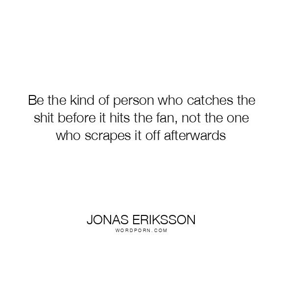 Be the kind of person who catches the shit before it hits the fan, not the one who scrapes it off afterwards