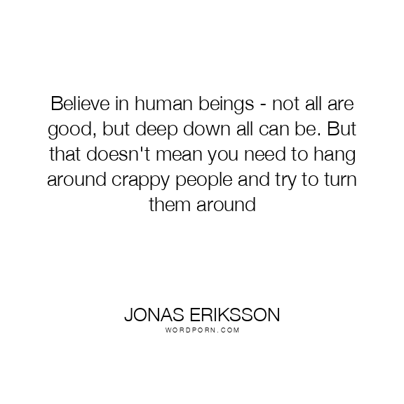Believe in human beings - not all are good, but deep down all can be. But that doesn't mean you need to hang around crappy people and try to turn them around