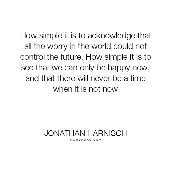 How simple it is to acknowledge that all the worry in the world could not control the future. How simple it is to see that we can only be happy now, and that there will never be a time when it is not now