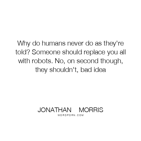 Copy Image Why do humans never do as they're told? Someone should replace you all with robots. No, on second though, they shouldn't, bad idea Moms Typewriter A A SAVE THIS IMAGE