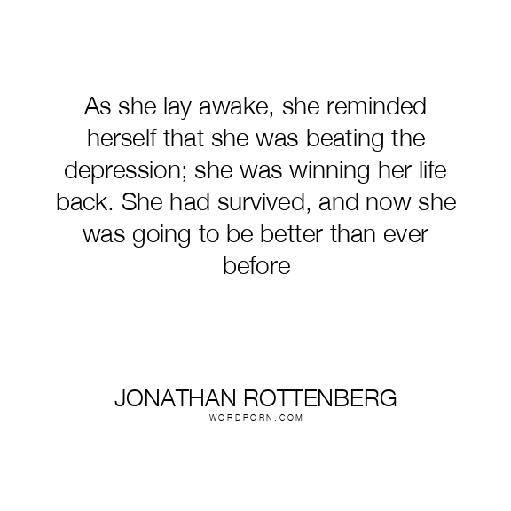 As she lay awake, she reminded herself that she was beating the depression; she was winning her life back. She had survived, and now she was going to be better than ever before