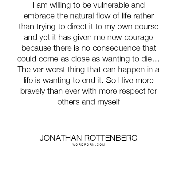 I am willing to be vulnerable and embrace the natural flow of life rather than trying to direct it to my own course and yet it has given me new courage because there is no consequence that could come as close as wanting to die… The ver worst thing that can happen in a life is wanting to end it. So I live more bravely than ever with more respect for others and myself