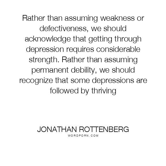 Rather than assuming weakness or defectiveness, we should acknowledge that getting through depression requires considerable strength. Rather than assuming permanent debility, we should recognize that some depressions are followed by thriving