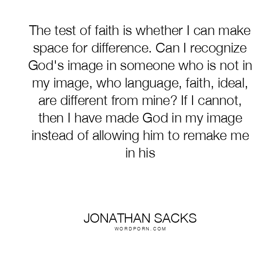 The test of faith is whether I can make space for difference. Can I recognize God's image in someone who is not in my image, who language, faith, ideal, are different from mine? If I cannot, then I have made God in my image instead of allowing him to remake me in his
