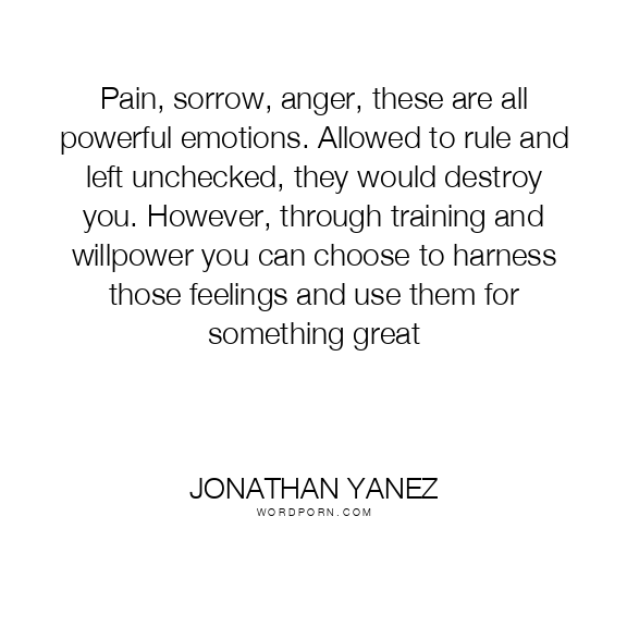 Pain, sorrow, anger, these are all powerful emotions. Allowed to rule and left unchecked, they would destroy you. However, through training and willpower you can choose to harness those feelings and use them for something great