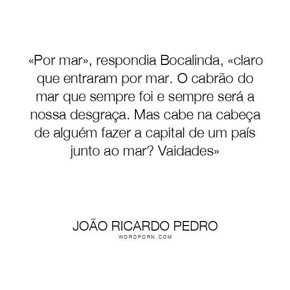 «Por mar», respondia Bocalinda, «claro que entraram por mar. O cabrão do mar que sempre foi e sempre será a nossa desgraça. Mas cabe na cabeça de alguém fazer a capital de um país junto ao mar? Vaidades»